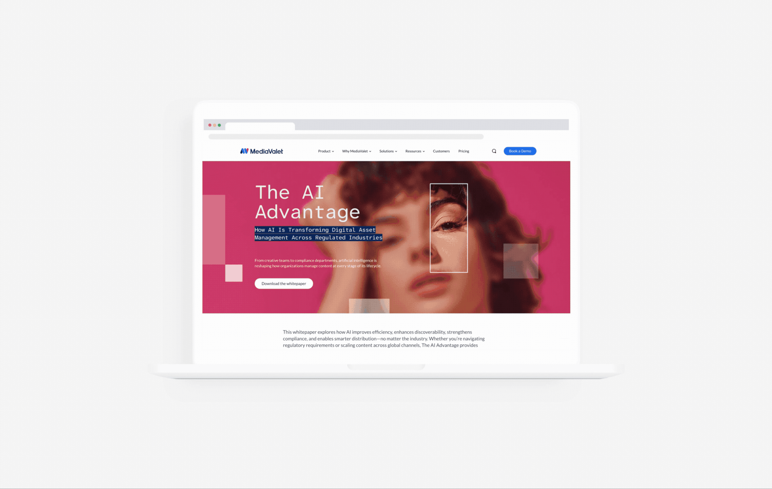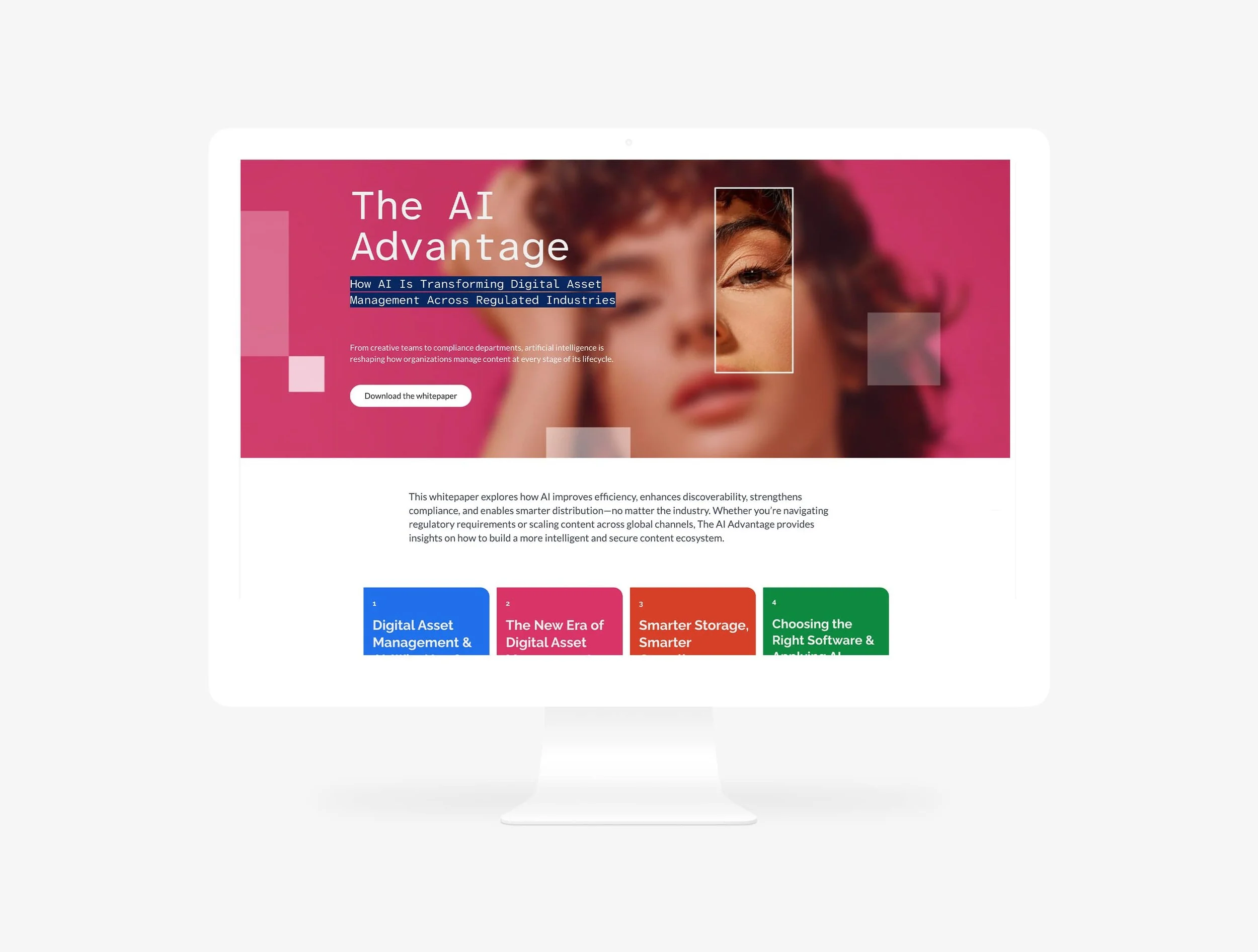 This 2025 whitepaper is an ungated landing page on the MediaValet site. The marketing team decided at the very last minute (when we were handing in the final PDF version for review) that an ungated landing page was needed. The page was built within 2 days with existing predesign modules/templates on WordPress as well as new modules to match to the design of the PDF.